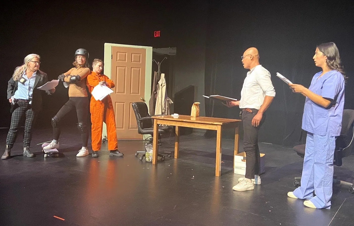 “Six (well, five) characters in search of a writer’s room. This send-up of television police procedurals is very funny, very smart, and—at an important moment in the play—surprisingly moving. The playwright has a sharp eye for the absurdities (and also delights) of the genre, and also has some very keenly-observed things to say about how sticking slavishly to a formula, and relegating minority characters and stories to the sidelines, can keep us from seeing the Big Picture. A well-crafted and thoroughly original play. With thanks to Pirandello.”